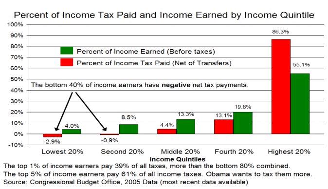The ammount of money paid in taxes is exactly the same as the government's spending ... You can't have a tax cut while spending is maintained/increased (unless the government is running a surplus) because the taxes are only delayed, and you will eventually repay the money (with interest) through increased taxes or increased inflation. Now, I know the "Progressive" thing to do is to increase the taxes on the "Wealthy" in order to cover this spending, but the "Wealthy" are already paying their fair share and any further disincentive for them to continue doing business in the United States will only translate into them moving their businesses to other countries.