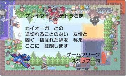 According to Tetra, he brought his Kyogre from his original third-generation Pokémon game on Game Boy Advance, and was able to get the certificate, and shared via Twitter how deeply moved he was by Game Freak’s little acknowledgement of all that effort.