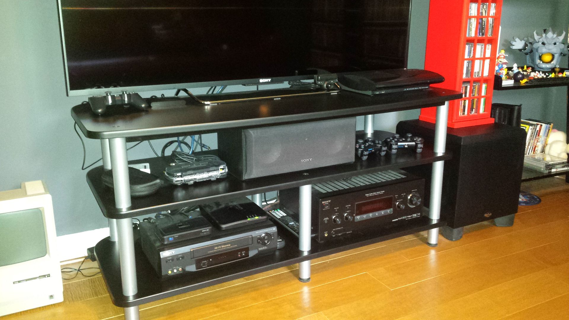 About my entertainment center, I love it. It was made by Sanus (www.sanus.com/en_US/) which makes some high quality sturdy stuff. What I have is the "Accurate" line of stands which was once discontined, but I think it's back. I like the style, but maybe I didn't take the best picture of it.