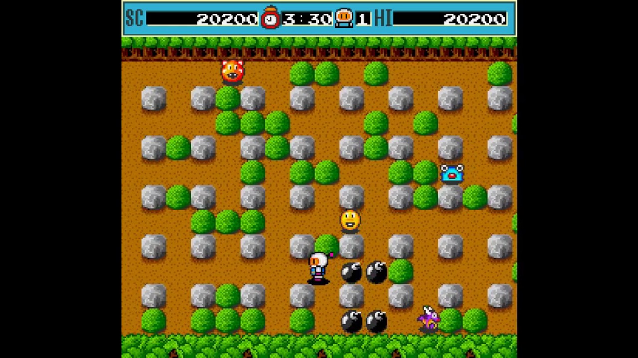 This is the Bomberman/Dyna Blaster for DOS and other platforms. It is NOT the same Bomberman for NES from 1985 or the game called Dyna Blaster in europe which was Bomberman II for NES. Way to go Hudson, for creating a complete mess with these names. Dyna Blaster is the european name under which I knew it. For long time I actually believed it was a Bomberman clone, I wasn't aware it was just the european name.