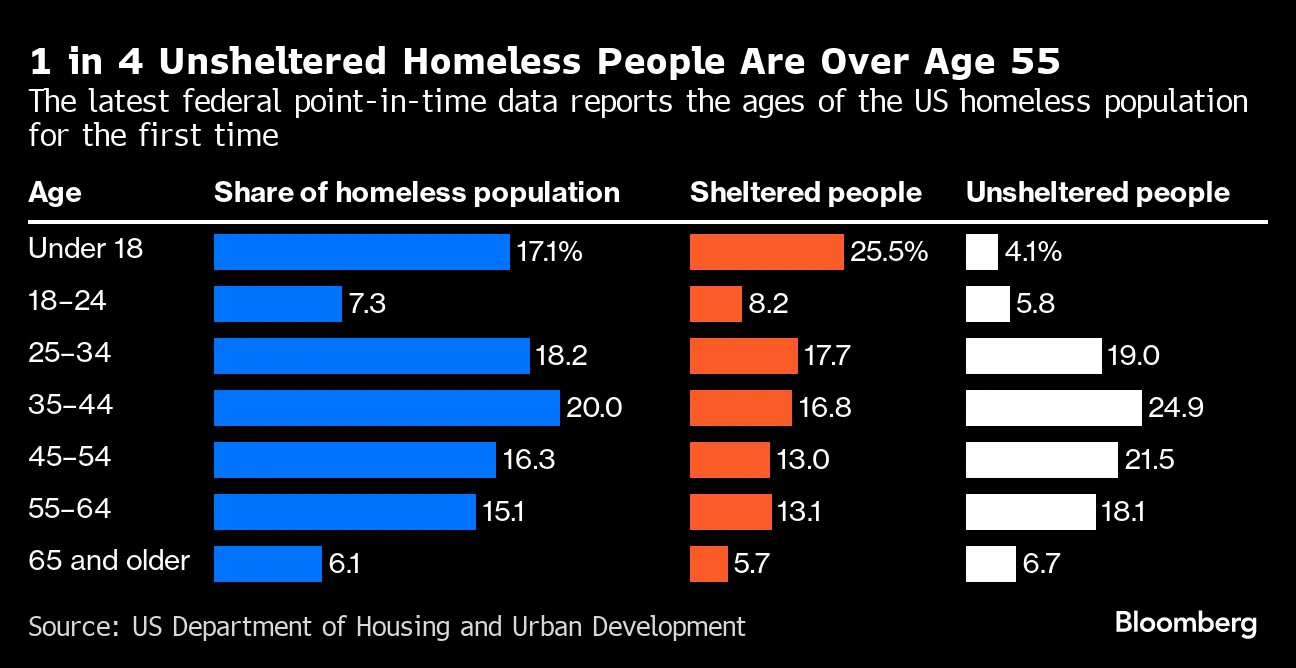 As for the homeless population, it's interesting the US Department of Housing is reporting 39 as the median age when sources I've seen quote 45 and above. I discussed average (i.e. mean). Regardless, people over the age of 50 are the fastest growing homeless population, and, as trends continue, will skew the average and median as time goes on.