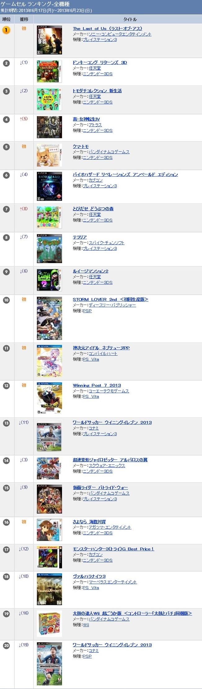 Interesting changes at the top there. I'm expecting Tomodachi to be top this week in Media Create.