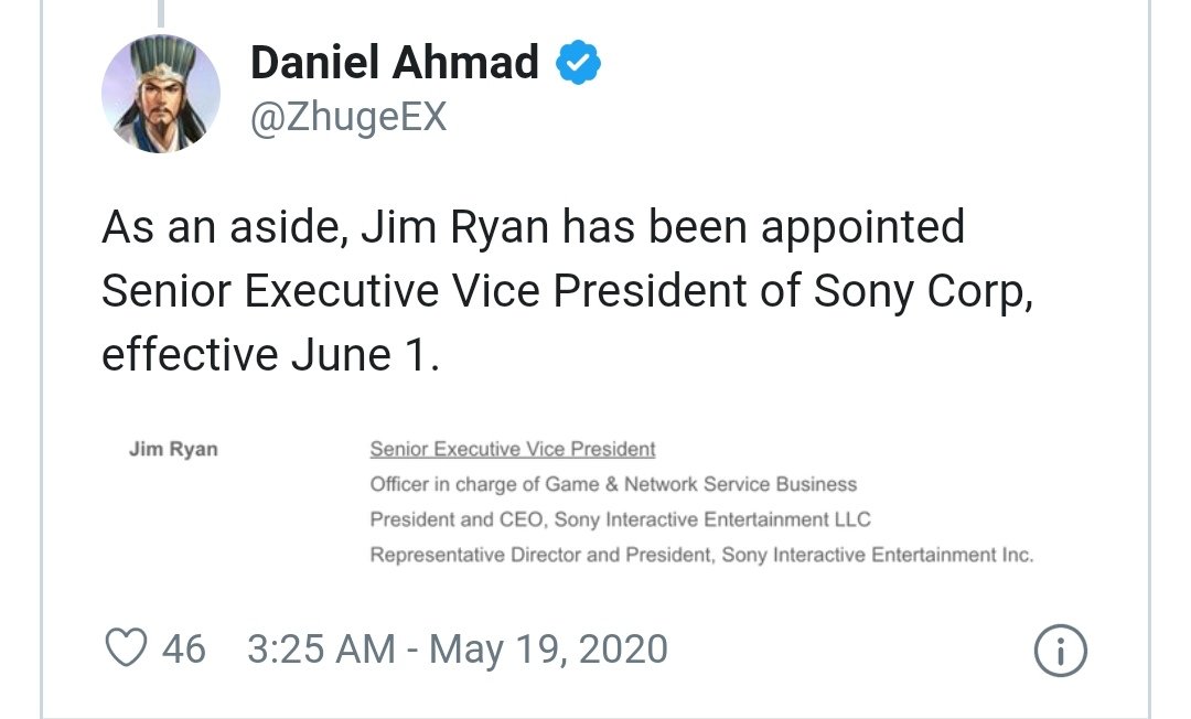 Kaz Hirai had his position and was promoted to CEO of Sony if I remember correctly. Under Kaz, SIE was one of 3 divisions that became a heavy focus but it was mainly because those were the 3 most profitable divisions and the company as a whole wasn't doing so hot if my memory serves. Jim's not moving to CEO and the company as a whole was doing excellent pre-COVID19.
