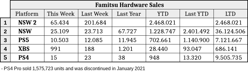 Coming in fifth place is the latest installment in the high-speed ninja action series Ninja Gaiden 4 and in 7th place is the Nintendo Switch 2 version of Persona 3 Reload, both of which are off to a strong start.