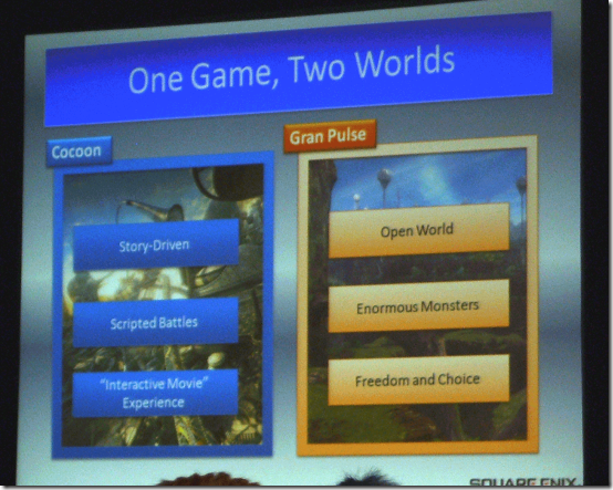 Cocoon is story driven. The concept was to create two different gameplay experiences. Cocoon was story driven and Gran Pulse was an open world. Even though Cocoon may feel long, the time you spend playing in each area is about half and half.