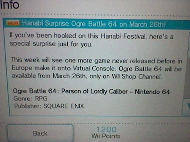| dunno001 said: Hmm.. maybe, maybe not for NA. Remember that the rights to Ogre Battle 64 in NA are a nightmare, with Atlus (who has no interest in the VC) doing distro here; though that license has expired, they may still hold the translation? |