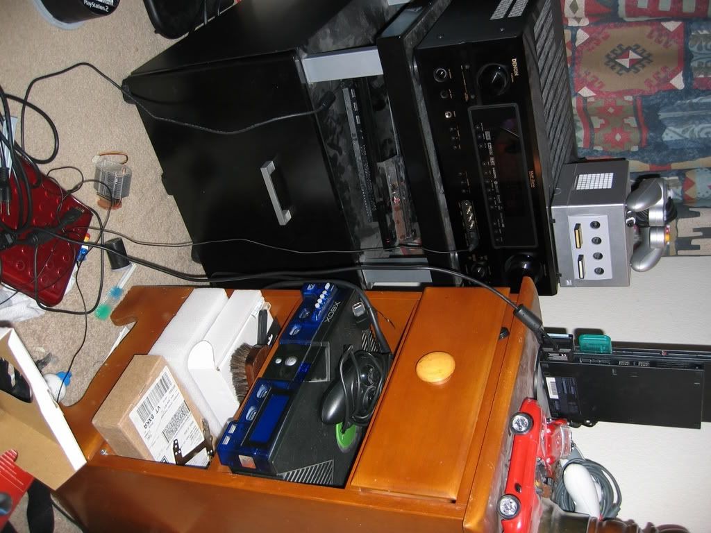 | W29 said: My setup is: 1: Insignia 20" HDTV 720p and 1080i 2: Xbox 360 Elite, soon to be Wii 3: 360 Video Games 4: 360 Power Brick, Head Set and other things Also loadedstatement did you just purchase a 40GB PS3? |