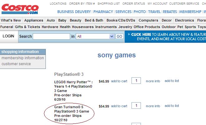 We've had so many rumors of Gran Turismo 5 being out by December. Okay, granted that the first time we heard that December window, it was for December of 2009. Now we're hearing a sort of reprisal of that episode, but this time it's for December 2010. And this time, it's Costco calling it.