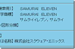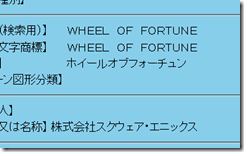 In addition to Samurai Eleven, we found trademarks for Wheel of Fortune (two of those, actually) and strangely enough “Victory”. The victory trademark is mostly likely related to Dragon Quest Monsters Battle Road Victory, a Wii game which makes its debut this week. Still amusing to note because victory is a common word, which Square Enix now has the rights to in Japan. It’s like how Edge Games owns the word “edge” in North America, without any pending lawsuits.