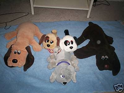 Chip the Cat (Beanie Babies) I had the small, medium, and large Chip. Of course the large one was my favorite. I loved her so much (I still do, shhh). She has withstood so much love; her eye beads are scratched up, and one has a crack in it. She only has half a nose, and most of her stuffing is gone. I've played with her so much that some of the fur around the neck is gone, so there are little patches of furless areas around her neck. My mom had to stitch her tail back on a few times.