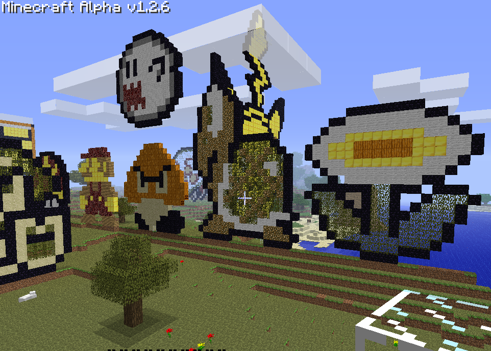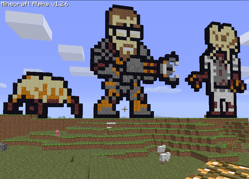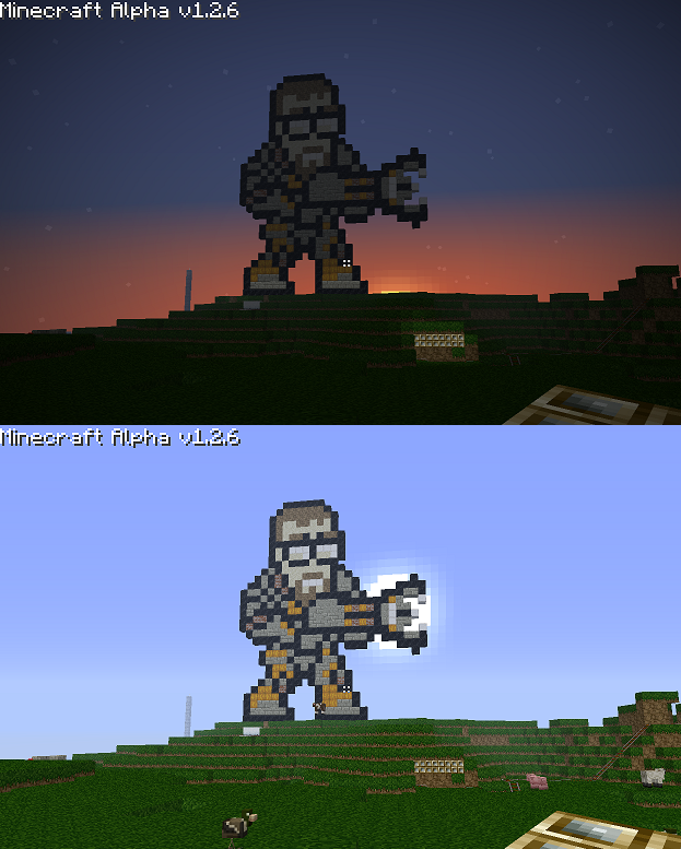 Today, all of my playing's been dedicated towards finishing my castle and building the garrison walls around it, so I didn't build any new videogame pieces. I plan on building a Rattata sometime soon, though, and it's going to be based on the Pokemon Yellow sprite. I imported somebody's model of the USS Enterprise NCC1701-A at one time, and I intend to build Rattata near it for the lulz.