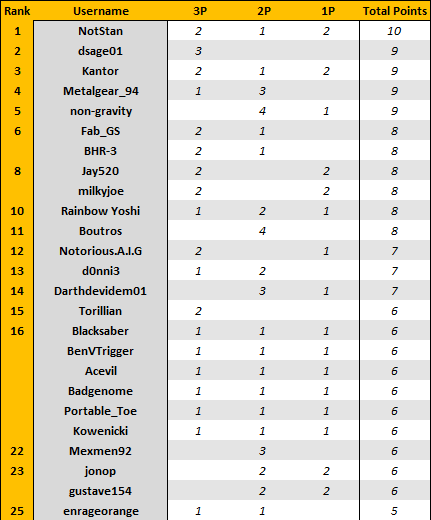 I think you've made a mistake with Kantor's points. Should be 10 instead of 9.