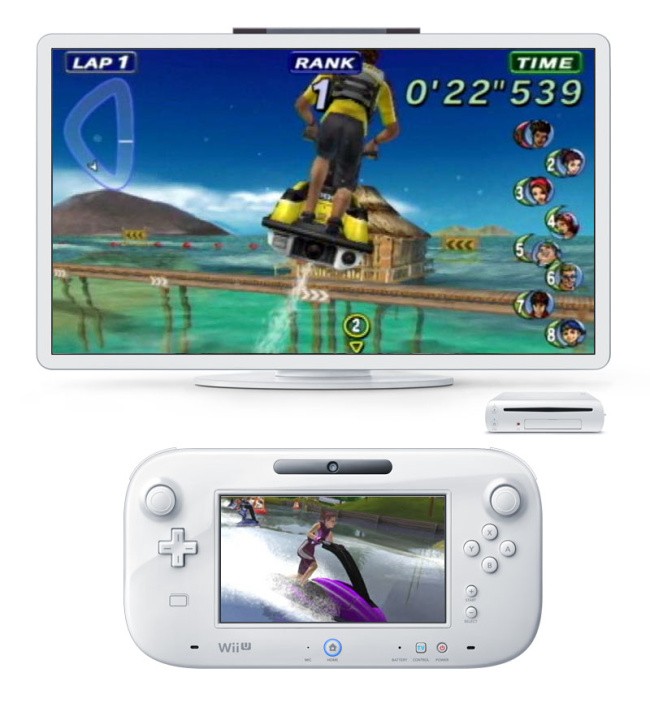 Alternatively, the GamePad could offer a personal view of the race while you control the water-ski with the analogue sticks. While the TV displays your race, the GamePad screen could be rotated around you to see racers alongside trying to overtake. This adds a risk/reward element in – do you take your eyes off what is in front of you to see who is beside you or keep your eyes ahead and hope no-one is trying to get past?