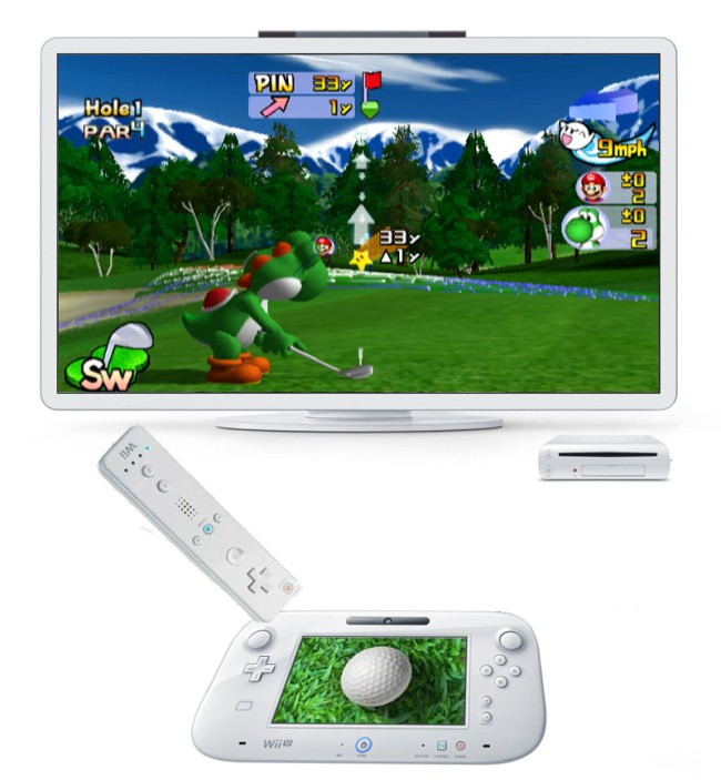 While the Wii Remote is a huge bonus for casual golf fans, allowing anyone to simply pick-up and hit the ball into a Chain Chomp bunker, the GamePad offers greater possibilities for the more involved golfer. The GamePad could allow you to observe the hole from all angles and line-up shots using the touch screen, while also providing traditional control options to hit the ball. Obviously in this scenario, the GamePad would not be placed on the floor.