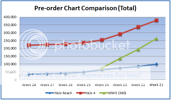 It won't be too long before MW3 pre-orders overtake Halo 4 at the rate it's going.