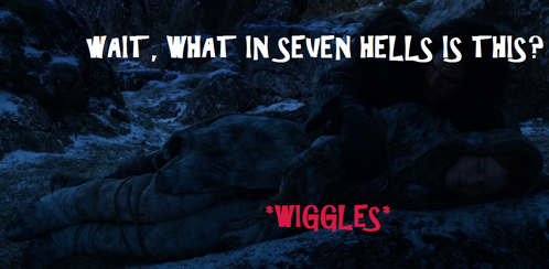 I like how Ygritte was tempting John Snow. I would have not put up a good fight, I would have gave in right away. Expecially since the Lord Commander talked about knowing guys from the black sneaking off and getting laid. She is one sexy red head.