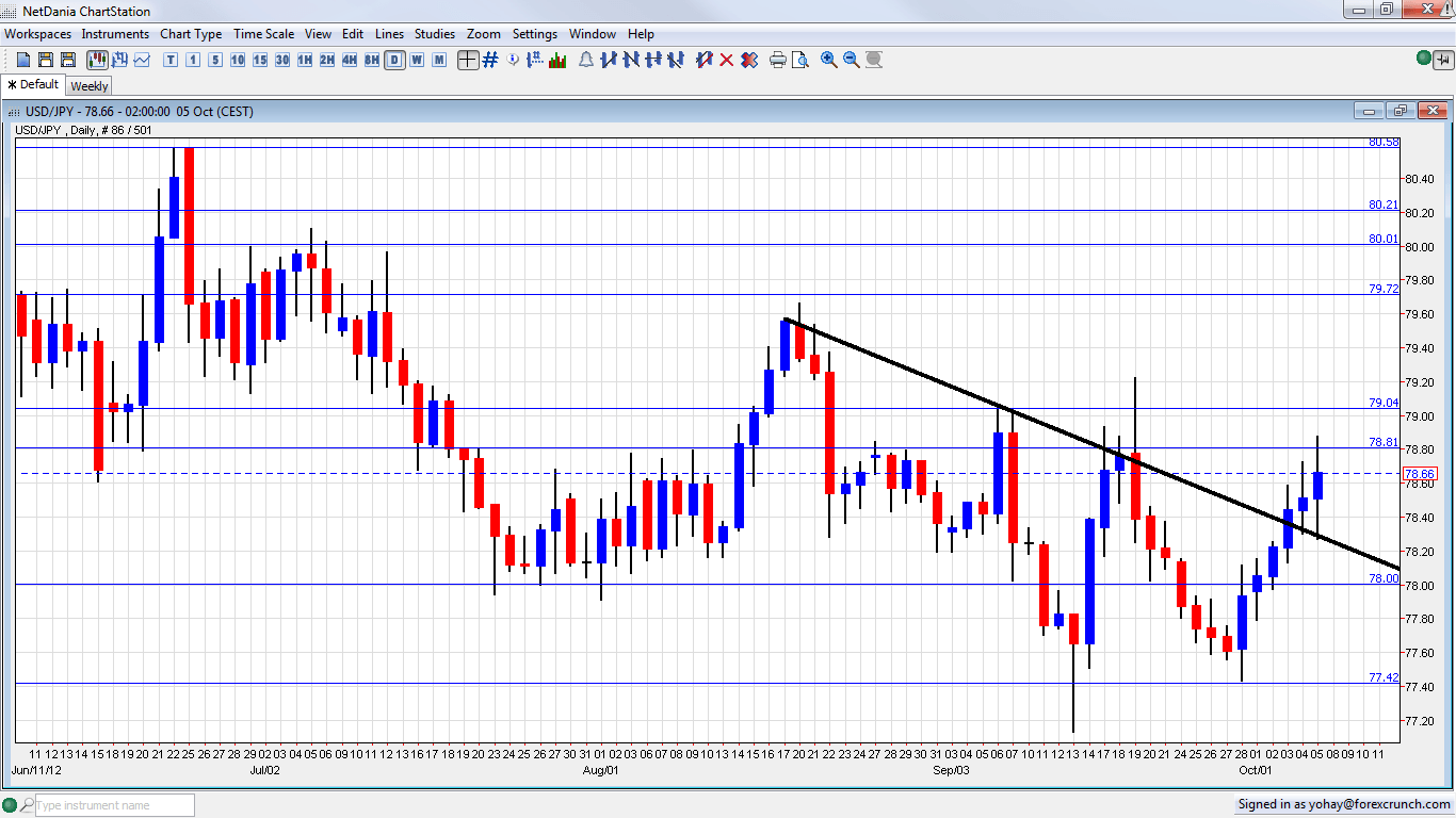 Well, if you take a look at this: http://www.forexcrunch.com/wp-content/uploads/2012/10/USD-JPY-Forex-Prediction-October-8-12-2012.png it's quite clear that the Yen is dropping against the dollar. Just sayin'