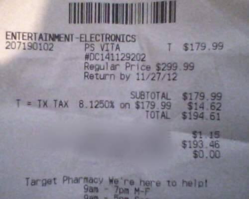 Recently Target lowered its 3G PS Vita Launch Bundle from $299.99 to a staggering $179.99–that’s a $120 price drop! I personally went to a Target to confirm the price, but throughout the purchase it was clear that Target had made a mistake with the price change. Employees did everything they could to keep me from actually buying it–from claiming it had a different serial number (it plainly had the same number on the box and the website) to attempting to peel off the features sticker which proved it was the same product. Then, they tried to say it was an online discount only, when the online page clearly said it was available in-store only. After about an hour of negotiations, I finally got the PS Vita for the heavily discounted price of $179.99, but it’s clear that someone at Target made a mistake.