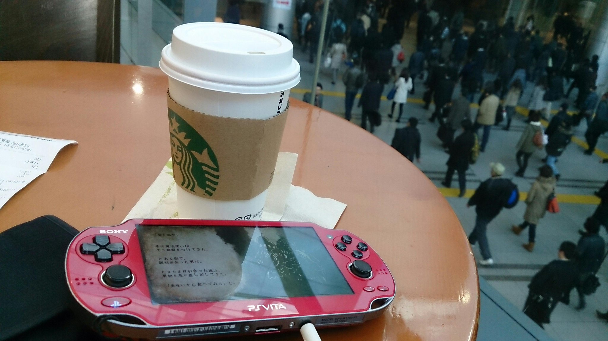 "playing Soul Sacrifice in Starbucks in Shinagawa station before work"