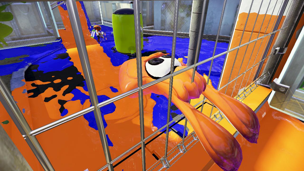 Today's Splatoon screen: jumping through fences in squid form.