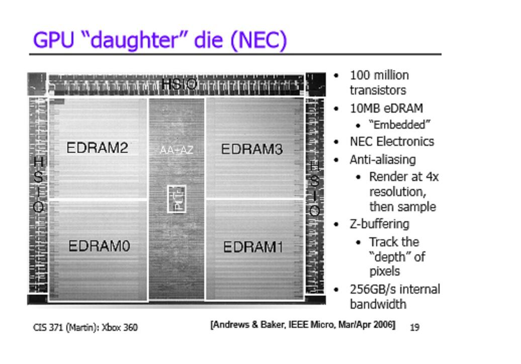 bandwidth. This is why Xbox 360 has 256 GB/s bandwidth reserved just for