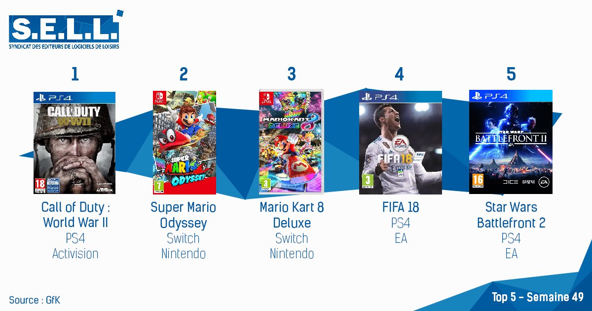 Both SMO and GT Sport are significantly up in France. The Switch top 3 is Mario-only, adding concerns to the 3rd party performance on the system as Skyrim's 3rd place was short-lived. In Italy, GT Sport races to n°1 as PS4 kills the competition : only Pokemon UltraSun prevents the top 10 to be PS4-only. |