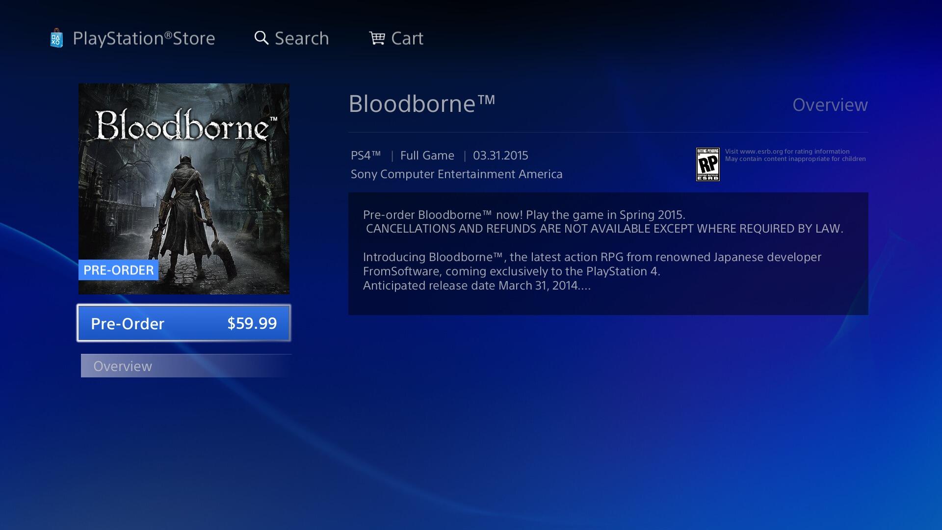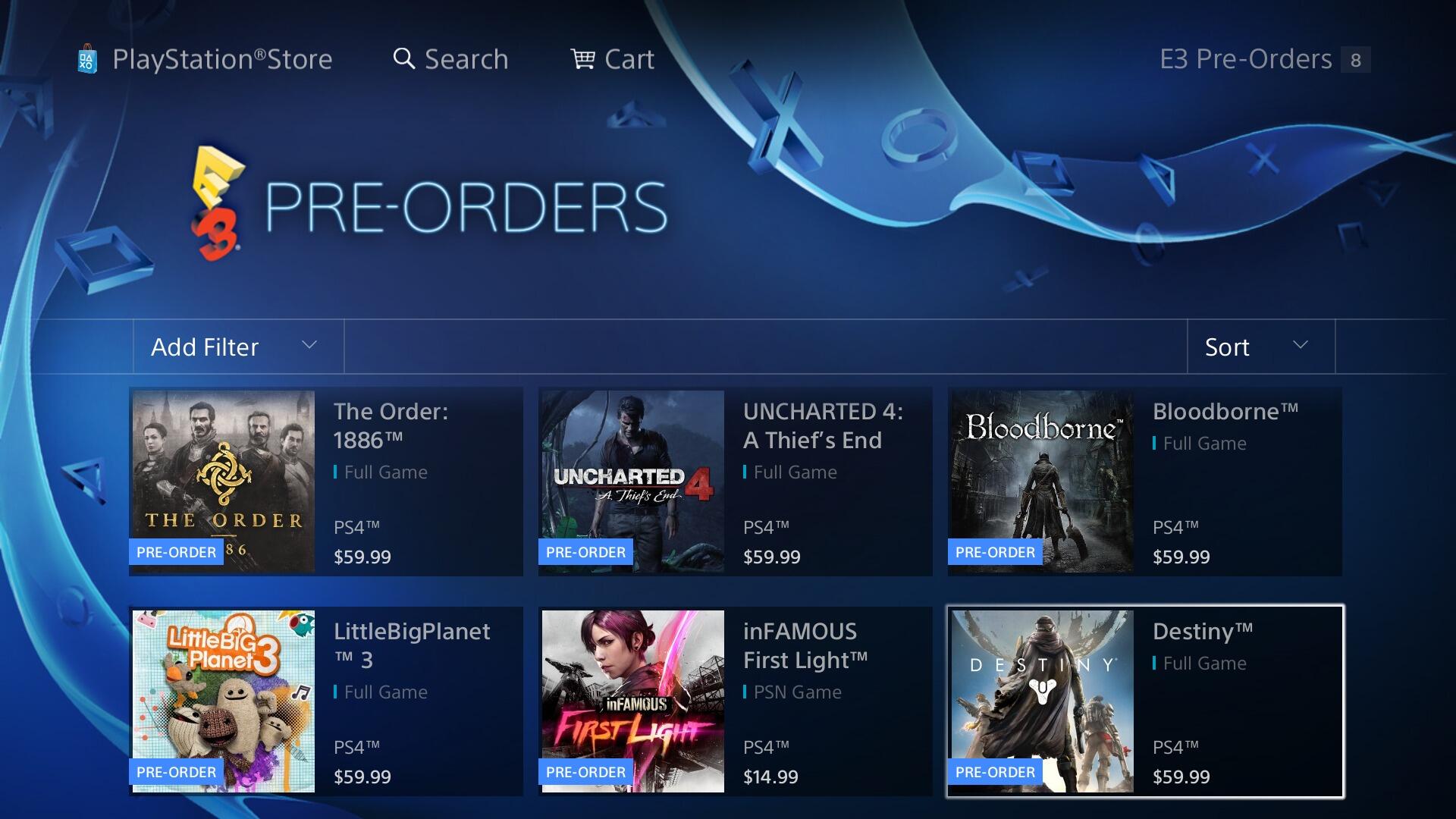 From the US PSN Store: Uncharted 4, Bloodborne, The Order: 1886, LittleBigPlanet 3 and inFAMOUS Last Light are all up for pre-order.
