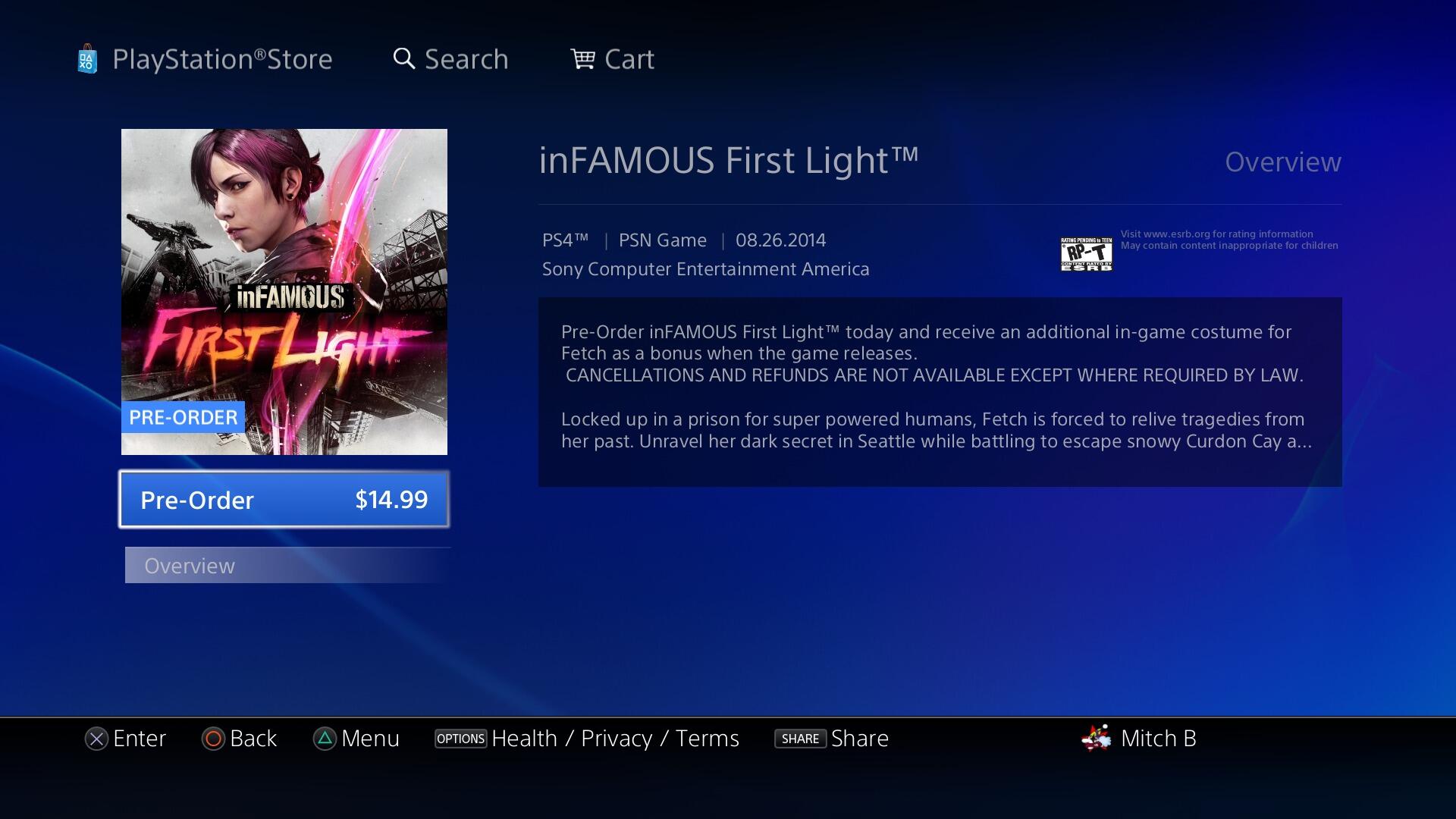 As you might see, it reveals the pricing for inFAMOUS Last Light, it's $14,99!