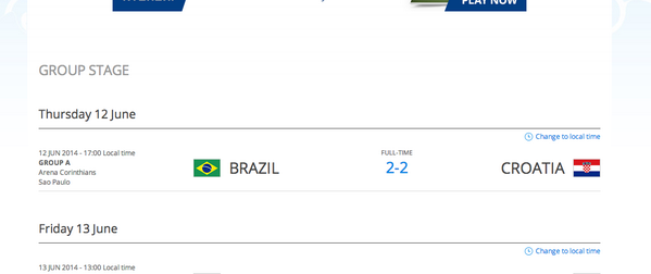 Brazil 2 - 2 Croatia Yeah I had a bit fun with that. |