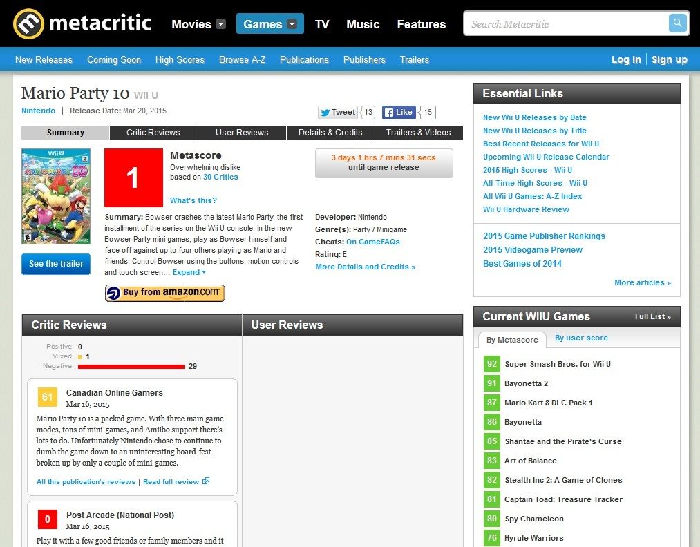 Truth. It could be the pinnacle of party games and not even get an 80 meta. It's really hard to look at a party game from a critical perspective because it's just supposed to be a dumb, fun game to play with friends and family. Not much else. There's not much to take off points for unless it's broken or just not fun, yet they can't give it too high of scores because it is a party game, after all.