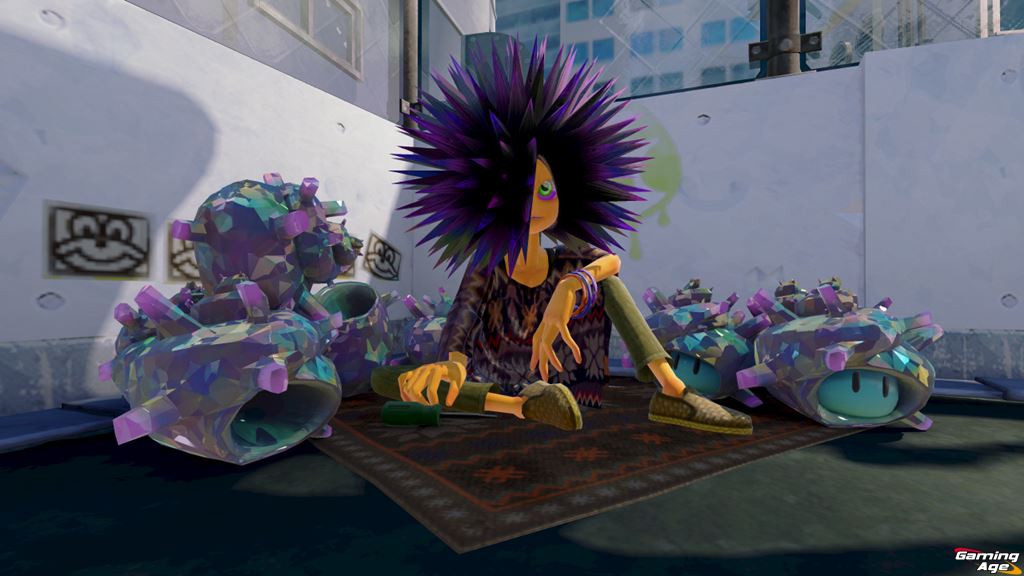 This is my favorite character in Splatoon. The Super Sea Snails on the right are shivering in fear and the shells on the left are empty. :p There's also a screwdriver near his :leg. A junkie in a Nintendo game, nice. |