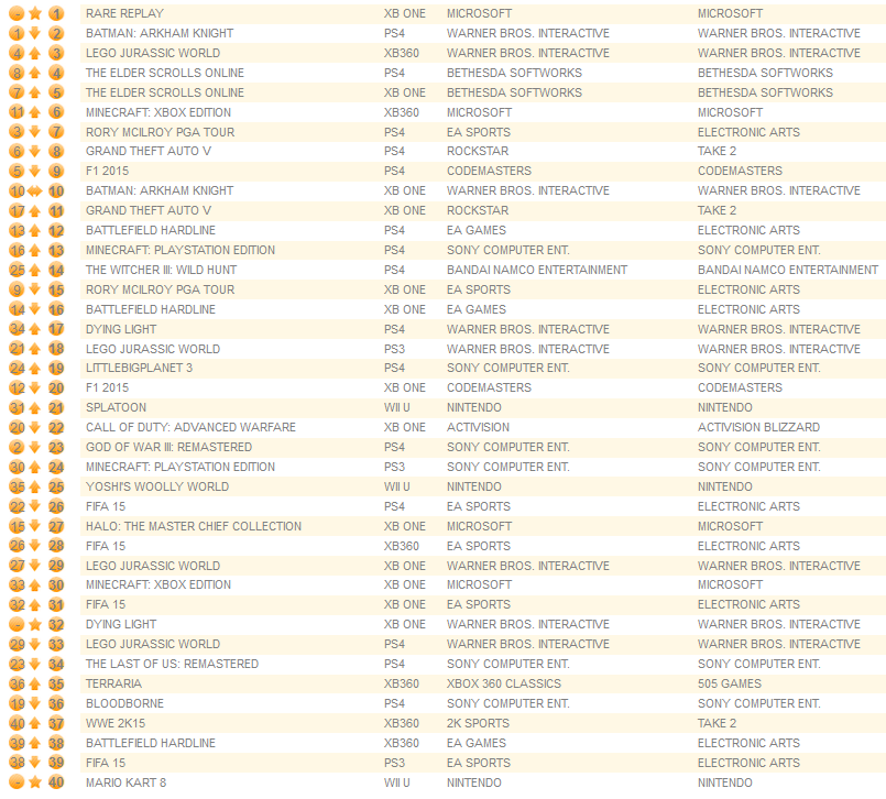 Splatoon, Yoshi and Mario Kart 8 all went up on the UK chart of the week ending 8/8/15.