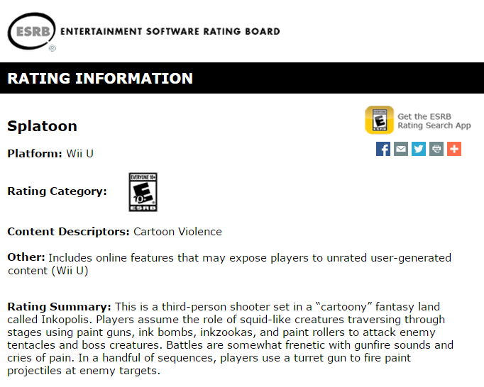 Here's the (somewhat odd) ESRB report on Splatoon.