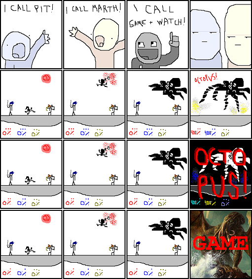 | BenKenobi88 said: Dedede for the win. His B-up is so great. I don't understand how my friends NEVER dodge it! It must be because he launches up SO DAMN HIGH, and by the time he makes his descent back to earth, the other 3 fighters forgot about him. Then BAM! His B-down is a ginormous ass-kicking mechanized hammer, half the time I can't use it effectively, but the most fun comes in simply scaring the shit out of everyone as I walk and JUMP around with a huge, presumably jet fuel-powered, fully charged mallet. His B-side? Waddle-dees for everyone! Some big slow guy like Dedede can't extend his reach to you way over there with his humongous hammer alone? Throw some Waddle-dees over there! Hell, throw some spike things once in a while, and even BOMBS and SMASH BALLS. Yes. The magical coat of Dedede stores every item known to man. Did I mention he can swallow a man whole? Yeah, he can. |