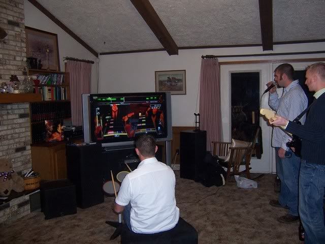 Good times, folks. It's like Guitar Hero on crack. My friend played the drums, I was on the Guitar, and my sister was on the microphone. Then, my sister's boyfriend brought his Guitar Hero guitar, so we had a full band.