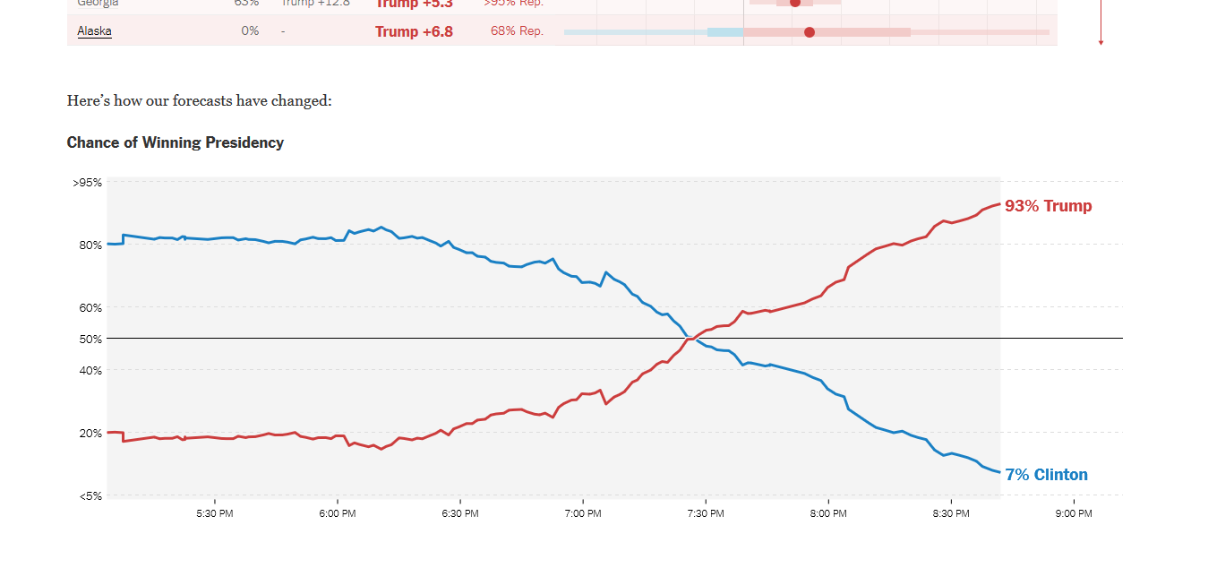 No way in hell he's taking Cali. But still, he's going to win the election. It's almost impossible for her to win. Moving to Canada for sure.