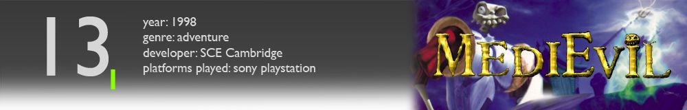 One of the best PlayStation games and one of the best adventure games in general, 'MediEvil' was a fresh take on the genre and a take we sadly haven't really seen since. The game centers around the fallen knight "Daniel Fortesque", who is hailed as a hero in a past war, but in reality wasn't anything of the sort. When the evil sorcerer Zarok plans to strike again, Fortesque is resurrected to battle his old nemesis, but remains an undead.