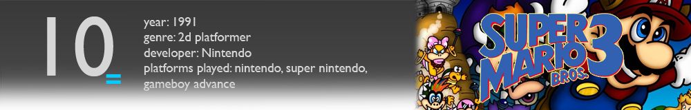 The highpoint of the classic 2D Mario platforming series was it's third game; 'Super Mario Bros. 3'. Almost the best 2D platformer in general, every aspect from the tight controls to the precise level-design is so polished that it could barely be any better. Gameplay was tweaked in subsequent ports, but even in it's original release on the Nintendo Entertainment System, control over Mario was so tight, so natural, it might just be the most fluent game you'll ever play.