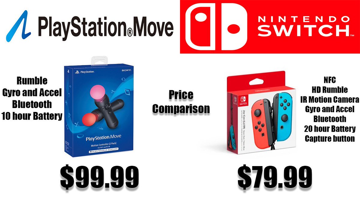 How can someone tell me this? The Joycons are way more technologically advanced than the move controllers yet people are saying Nintendo are the ones selling overpriced accessories.