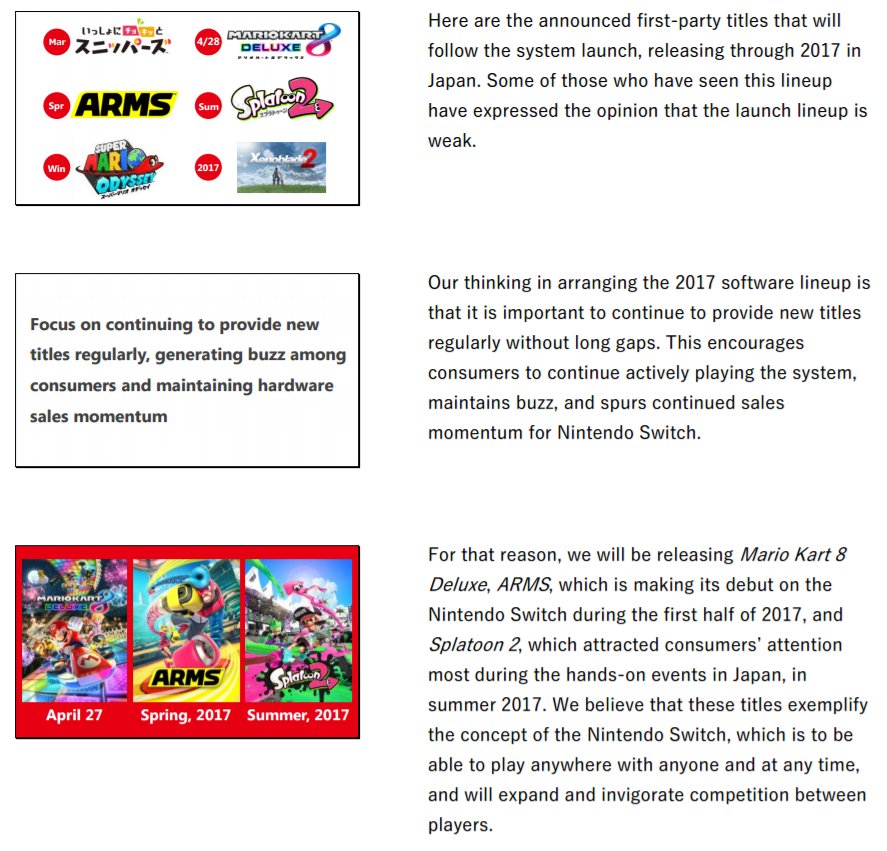 Going by the order of the covers it looks like ARMS will come out between MK8 Deluxe and Splatoon 2, hence likely in late May to set apart the releases of the games evenly. It's to be noted that in this scenario ARMS would follow the path of the original Splatoon which released in late May as a new IP, with a lower pricetag and the promise of additional content to come later on.