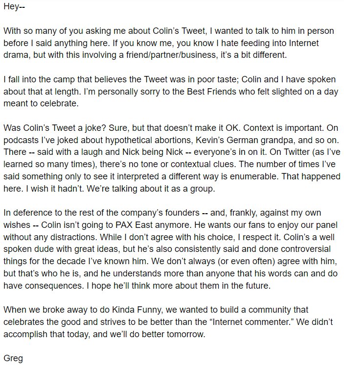 Instead this vindicated everyone that loves to hate on people, to pile on too, and the end result is Colin was basically forced to leave his work.