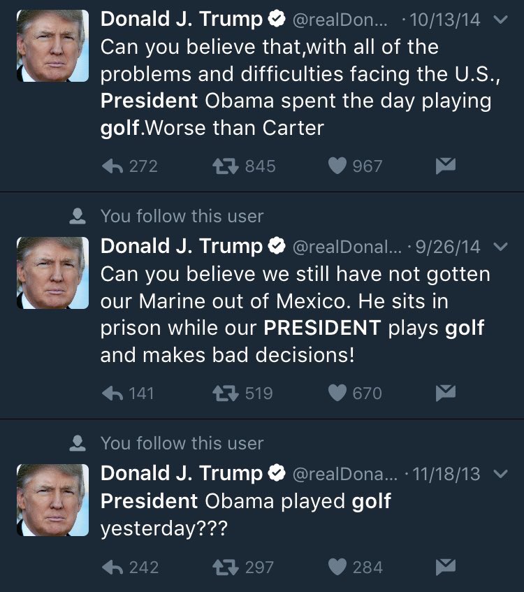 The world is perhaps on the verge of a nuclear confrontation, but the lair in chief Trump is at Mar-a-Lago and playing golf. I'm not even American and I can't stand him. How can Americans put up with this guy???