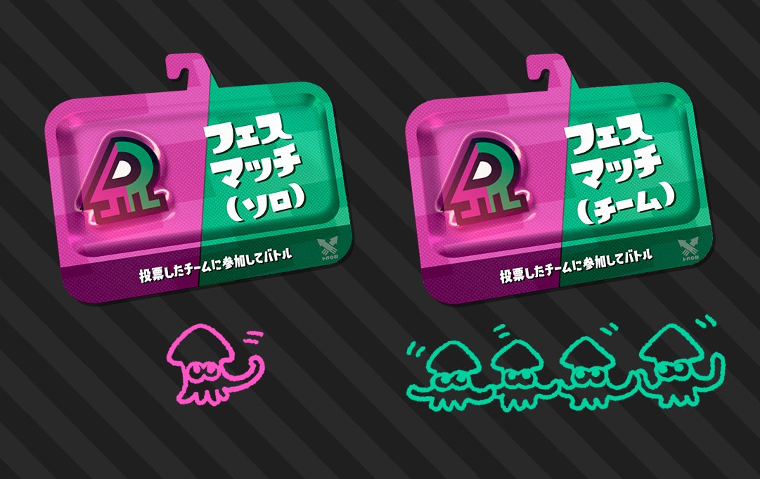 Splatfest are now divided in to Solo and Team Play, with the win percentages from each plus popularity determining the score. This should hopefully make the results more unpredictable. More importantly, we can finally play with friends during Splatfest via forming a quad squad to take on other squads. So then, shall we form a VGC squad? :O