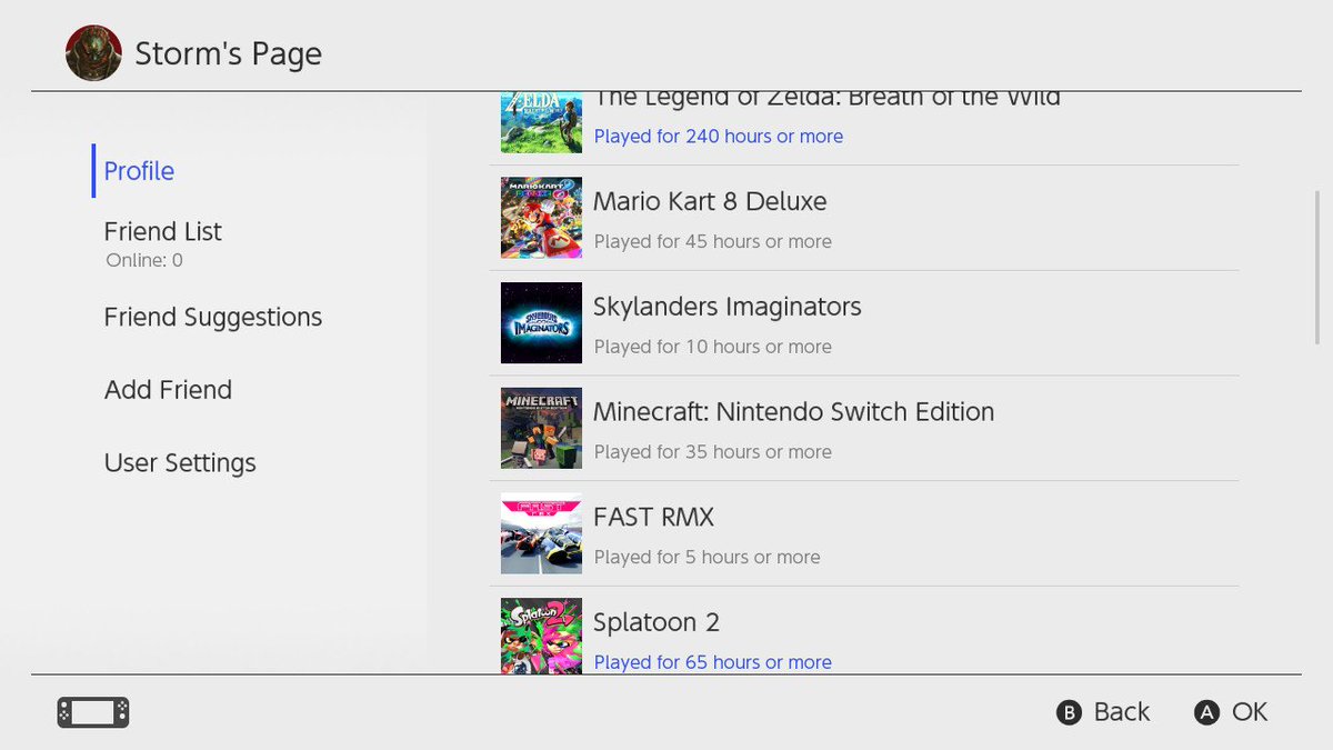 There's 400 hours of playtime right there, not to mention that the Switch only clocks up each next 5 hours when it has passed so there is anything up to another 24 hours there, not to mention the likes of Tumbleseed, Disgaea 5, lego city undercover and snipperclips which have yet to cross over the 5 hour mark but all would be close as well. Given the extra approx 30 hours of unaccounted play it's closer to 3 hours of Switch play each day since it launched.... as you can imagine my other systems have suffered accordingly.