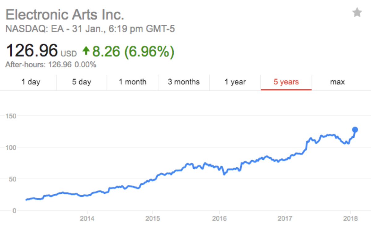 Other causes for investor excitement may have included the announcement of a new Battlefield game for October, and the ongoing success of its annual sports franchises such as FIFA and Madden.