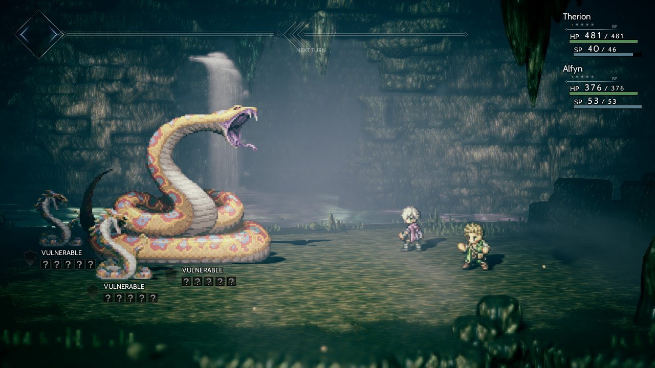 But that's the least of my problems, as I really can't get into this game. The visuals are pretty, combats are cool and from occasion to occasion quite intense and the soundtrack is alright, but the narratives so far all have been very uninteresting, I haven't even passed through one that encourages me to keep going. Plus, the ways the characters interact with NPCs and especially new recruits for the party are quite laughable. Primrose goes "I've found the guys that killed my father, but this isn't your problem... But since you don't seem to care, let's go, anyway".