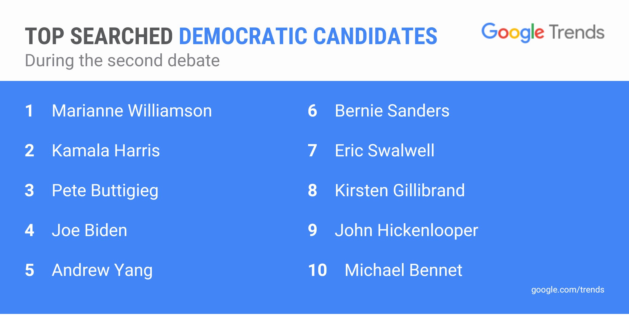 Losers: Williamson, Gillibrand, Hickenlooper, and Yang.