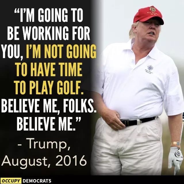 So he lied to us about not having time to golf? Sounds like a pretty damn normal political lie. Literally the majority of what I hear most politicians spout winds up being...a lie. Do I like that our politicians lie? Nope, annoying as hell. Annoying that Trump does it, annoying that everybody does it.