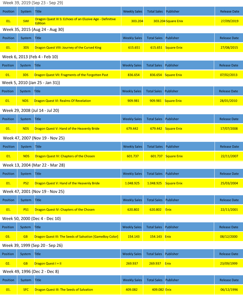 I also wanted to add this comparison for DQ Remakes/Re-releases (Source is Famitsu):