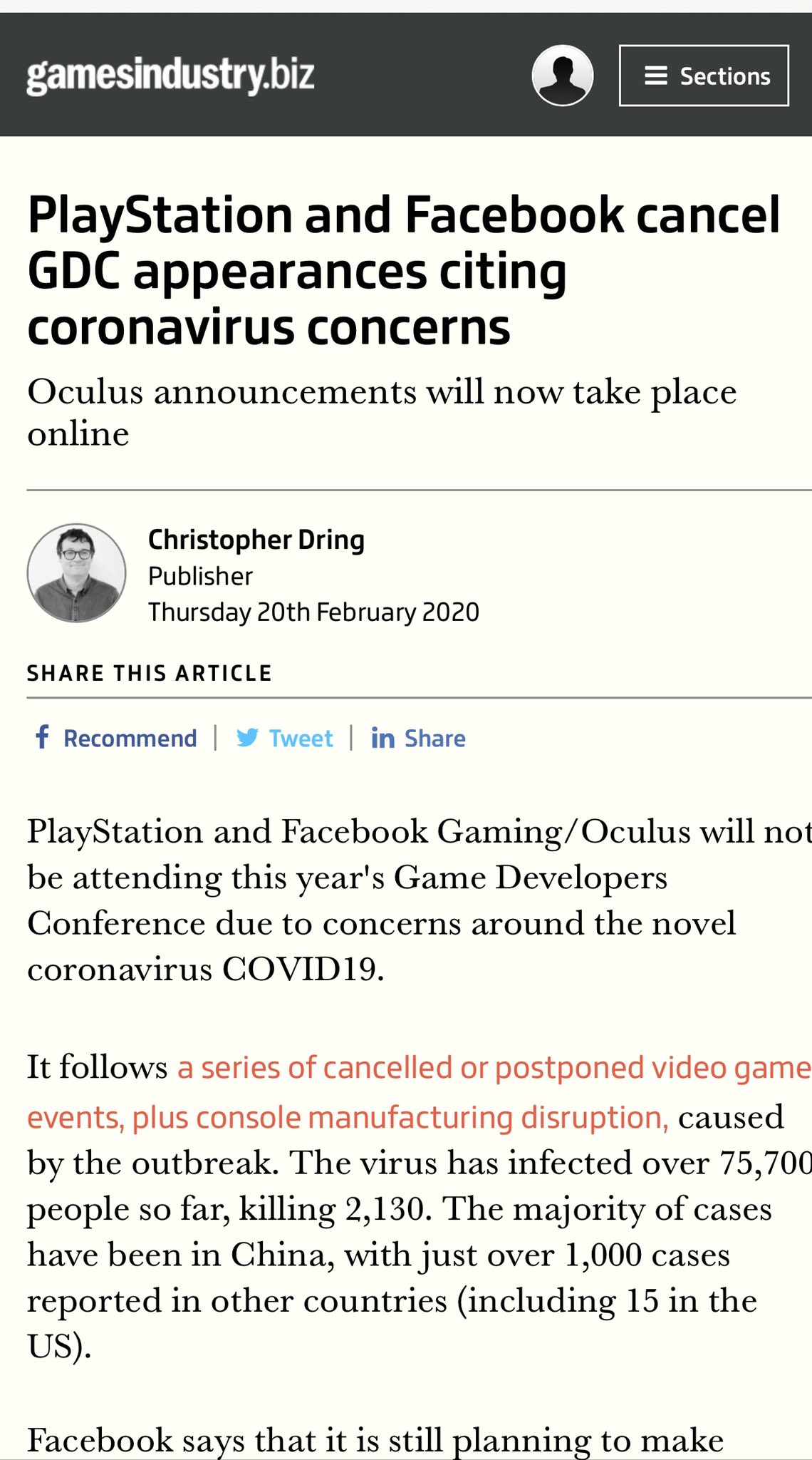 After E3 and PAX East, Sony announces they are skipping GDC this year as well, citing the coronavirus as reasonhttps://t.co/h4c8clto1j pic.twitter.com/3900FZaM6D